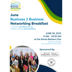 News News Visit Santa Barbara Shares Tourism History At Annual General Meeting June 5, 2025 Read More → Promote Your Business At The State Street Visitors Center! June 5, 2025 Read More → Building the Future Workforce: CHIP Program Connects Students with Industry May 29, 2025 Read More → Register For June B2B Sponsored By Berkshire Hathaway HomeServices – Marie Sue Parsons May 29, 2025 Read More → Join Us Next Week For Meet Me In Old Town May 29, 2025 Read More → Be A Sponsor Of The Goleta Lemon Festival May 22, 2025 Read More → Welcome Camden Gustason – Our New Events Manager! May 22, 2025 Read More → Discover The Best Of Our Community In The South Coast Chamber Magazine May 22, 2025 Read More → Upcoming Ribbon Cutting Events May 22, 2025 Read More → Lemon Festival Volunteer Applications Now Open May 15, 2025 Read More → CIO Solutions Celebrates New Goleta Office May 15, 2025 Read More → Businesses Explore Benefits of Free Paid Work Experience Program May 15, 2025 Read More → WitMark Wins Award for ‘So Much to Love’ Campaign May 8, 2025 Read More → Goleta Lemon Festival Returns September 27 & 28 Vendor Applications Now Open May 8, 2025 Read More → Mental Health Awareness Month May 8, 2025 Read More → Chamber Welcomes New Board Member Mark Korte-Nahabedian From Chevron April 24, 2025 Read More → Chamber Hosts Informative State of the City April 24, 2025 Read More → Meet Me in Old Town Goleta Returns May 8 Vendor Booth Applications Now Open April 24, 2025 Read More → Chamber Members To Be Honored At Nawbo Bravo Awards April 24, 2025 Read More → Chamber Welcomes New Board Member Lisa Horner From AppFolio April 17, 2025 Read More →« Previous1…34567…36Next » Join Now Upcoming Events
