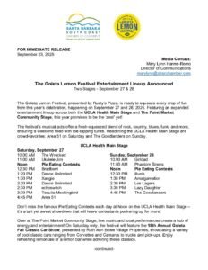 PRESS RELEASE – Goleta Lemon Festival Entertainment Lineup AnnouncedBy Santa Barbara South Coast Chamber of Commerce | September 24, 2025